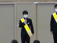 【生徒集会】生徒集会では新生徒会役員立会演説会を行いました。立候補者の具体的な方針についてはお昼の放送で放映しています。