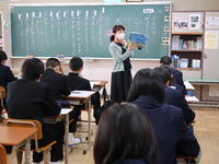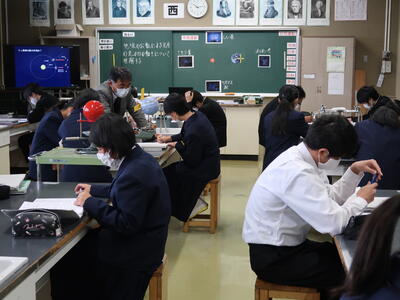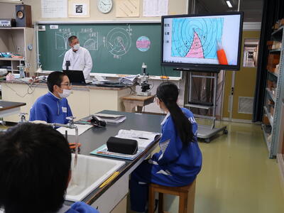 2年2組「理科」気団と低気圧について学んでいました。どのような状況で雨が降るのかをしっかり理解していました。