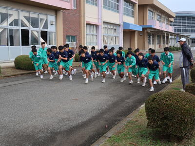 1年男子「保健体育」長距離走では同じペースで長く走ることが大切です。全員でペースを守って走っていました。中学生の時期は心肺機能が著しく発達する時期と言われています。すべてのスポーツにおいて持久力は必要です。