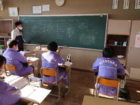 【授業参観】3年1組「数学」学習内容の振り返り学習です。概ね中学校で学ぶ学習内容が終了したため、教員の自作問題集に取り組んでいます。難しい問題も多かったようです。