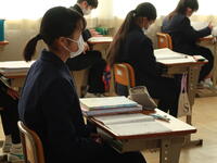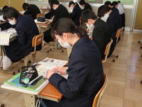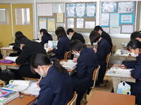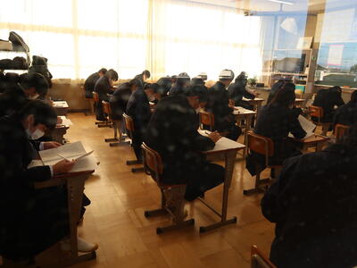 日差しが眩しくとても穏やかな朝を迎えましたが、日本海側では大雪警報が出され、幾度となく雪の被害が多く発生しています。今日は土曜日ですが、学校を会場に「日本漢字能力検定」を行っています。今回は1・2年生の希望者が3級・4級・5級の合格を目指して取り組んでいます。