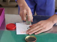 3年3組「美術」陰刻の作品を集中して作製していました。完成した作品を卒業絵手紙に押印していました。