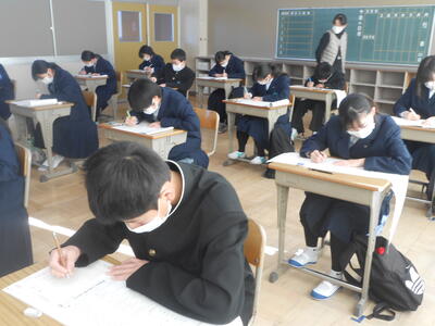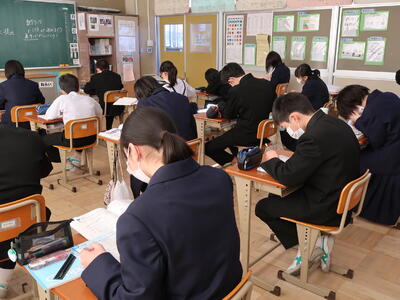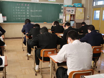 【授業参観】3年生は「実力テスト」に集中して取り組んでいました。