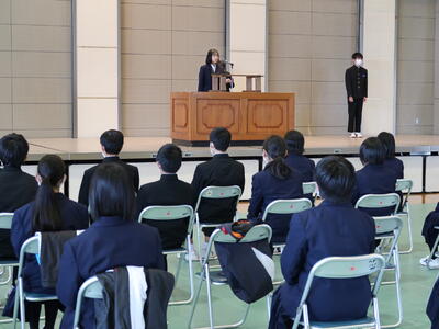 朝夕の寒さが一段と厳しくなり、日中との温度差が10℃以上になる日があります。厚着で登校する生徒が、昼には半袖・ハープパンツで過ごしています。日本海側ではようやく学校が再開したようですが、週末にはまた降雪が心配されます。今の世の中、心配なことが多いですが、ポジティブに物事を考え、明るく笑顔で生活したいですね。