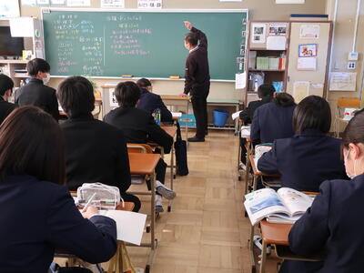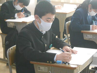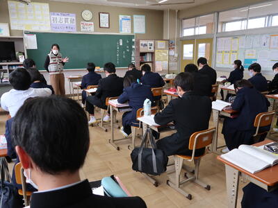 「緊急事態宣言」が発令され、少しずつ感染者数が減少していますが、まだまだ油断のできない状況です。3年生の教室に「合格したらやりたいこと」という掲示物があり、多くの生徒が「友達と遊びに行きたい」と書いてありました。ずっと我慢しているのでしょう。県立高校入試まで体調管理も重要ですね。