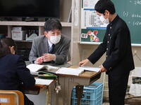 1年2組「数学」問題に対して学び合い活動を行っていました。わからないところを友達や先生に質問していました。