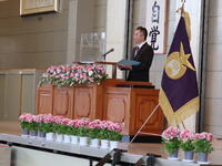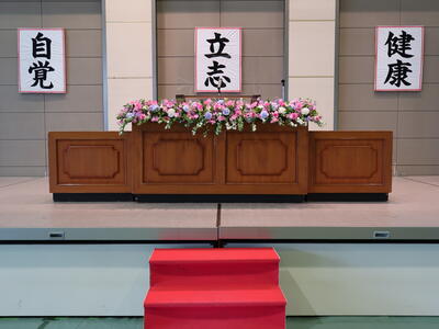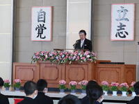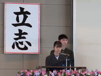 【立志式の様子】強風が吹きましたが、晴天の中で行われた「立志式」。2年生の立派な態度が印象的でした。夢に向かって、今後の活躍を期待しています。