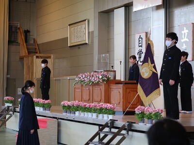 登校前にはみぞれ交じりの雨も降っていましたが、太陽が眩しい日になりました。今日は「立志式」が行われます。江戸時代の成人式でもある元服は、数えで15歳頃の立春に行われ、「元」は首の意味で冠をかぶること、「服」は成人の服を着ることを表し、髪型を変えたり、名前を改めたりすることもあったようです。現在は伝統的に行っている地域とそうでない地域があるようですが、本校は伝統的に来賓を招き、2年生を祝っていたようです。今年度はコロナ禍の影響により、2年生・保護者・1年生のみの出席となりましたが、2年生は緊張しているようです。