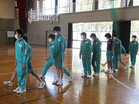 体育館を走った後に、集団行動の練習をしていました。3年生のようにできることを期待しています。