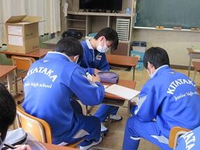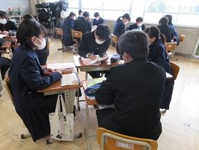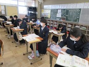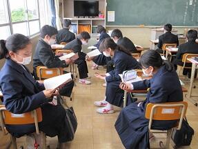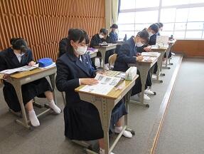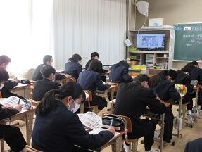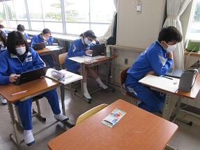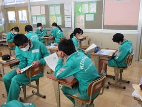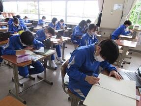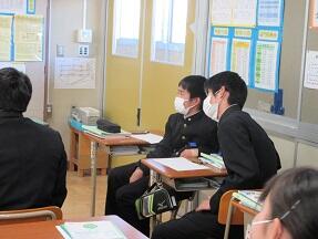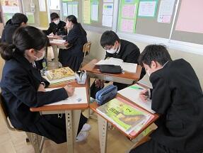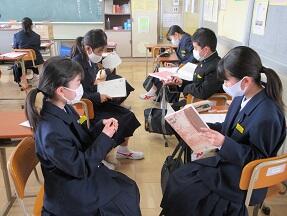 短歌を詠んで、その感想などをグループで発表していました。早くマスクなしでグループ活動ができる日が来ることを願っています。