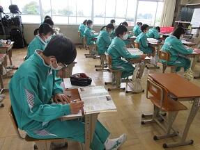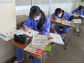 本文の予習の仕方について説明を受け、実際にノートに本文を書いていました。予習の大切さがわかったようです。