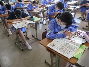 進行形の学習が展開されていました。こちらもペア学習が効果的に実施されていました。