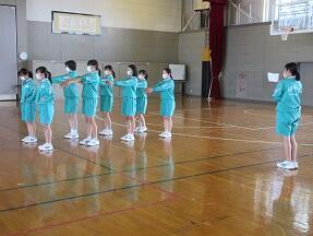 体育館を走った後に、集団行動の練習をしていました。3年生のようにできることを期待しています。