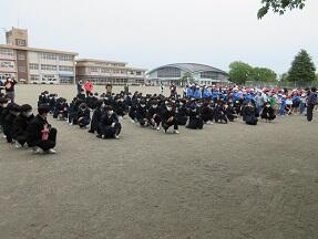 今日、東小学校と合同の避難訓練を実施しました。無言でしっかり避難することができていました。「自分の命は自分で守る」そのためにどんな行動をとればよいのかしっかり考えて行動できる生徒を育てたいと考えています。3年生が1番先に避難完了できました。さすが3年生です。おかげで避難訓練の雰囲気が引き締まっていました。