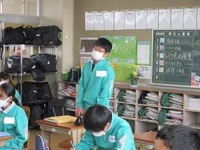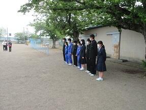 今日は、今年度初めてのあいさつ運動がありました。3年1組が当番で、校門前であいさつをしました。あいさつは社会で生きていくための基本です。しっかり身につけてさせたいと考えています。このあいさつ運動ですが、東小学校と連携して5月からの実施日には、東小学校の校門にも立って実施する計画になっています。