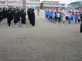 避難訓練終了後、東小学校との顔合わせ実施しました。