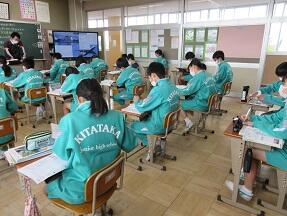 少人数で実施していました。本文中の単語の意味を確認したり、本文を読んだりしていました。