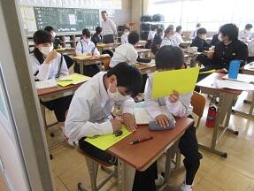 「式の計算」の単元の、確認の問題を解いていました。教科担任が個に応じ細やかに指導して歩いていました。