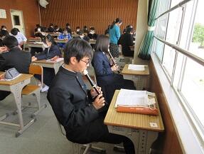 今日の4時間目に、3年1組が音楽でアルトリコーダー使って授業を展開していました。コロナウイルス感染症予防のため、3つのグループに分けて全員外向きで演奏していました。可能な限り感染症対策をとり短時間であれば、リコーダーを演奏することも可能だと判断して実施しています。早く全員でアルトリコーダーを演奏できる日が来ることを願っています。
