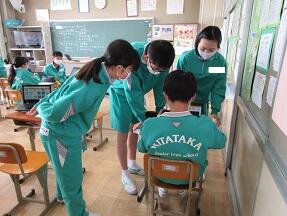 栽培しているレタスの間引きをした後に、パソコン室へ移動してレタスの栽培記録を作っていました。今日はICT支援の町の非常勤講師の方も入っての授業なので効率的に作業が進んでいました。