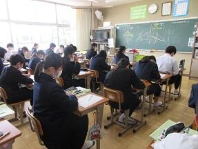 「多項式の計算」と「因数分解・式の計算の利用」のプリントをやっていました。物音一つ立てず、集中して取り組んでいました。