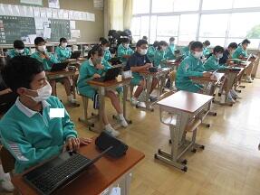 今日、生徒たちが家でタブレットがしっかり使用できるか確認するため持ち帰ります。その準備で、今日の6校時に全学年学級活動の時間を使い、家庭で何を実施するのかの確認をしました。御家庭での協力よろしくお願いいたします。また月曜日にタブレットと封筒を忘れないようにお願いいたします。