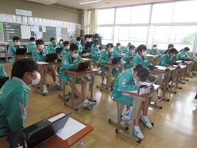 3校時までで全国学力・学習状況調査が終了し、4校時からは普通授業に戻りました。