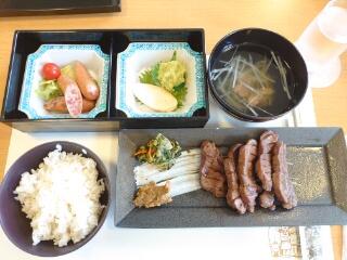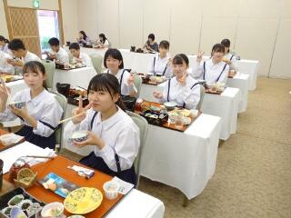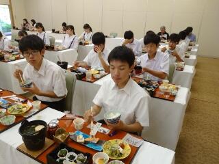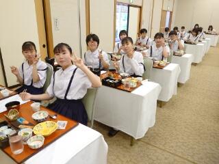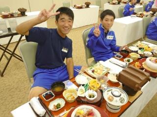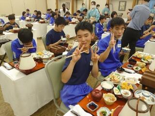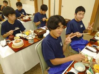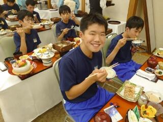 中尊寺の見学を終えて、2日目の昼食です。牛肉と野菜の陶板焼で、美味しそうに食べていました。全員、元気です。