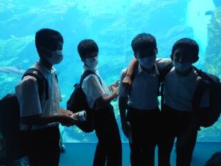 見学地の二つ目は、仙台うみの杜水族館です。イルカショーを見た後に自由に見学しています。みんな元気です。
