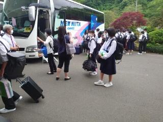 本日の宿泊地、秋保温泉に到着しました。1日目の見学が終了しました。生徒たちはみんな元気です。