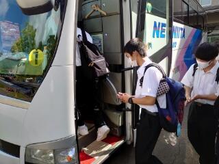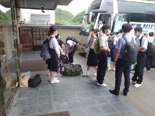 修学旅行全日程を終了し、ほぼ予定どおり、学校へむけて松島を出発しました。学校着時刻が大きく変更になる場合は、一斉メールでお知らせします。