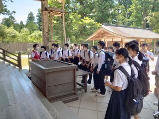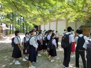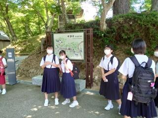 修学旅行3つ目の見学地、中尊寺です。専門のガイドさんの案内でクラスごとに見学しました。見学後には、買い物もしました。