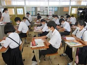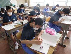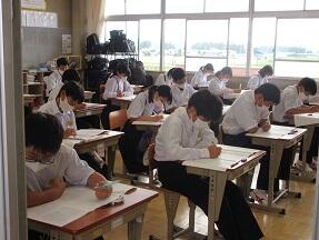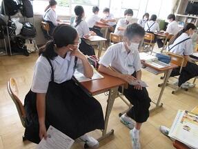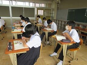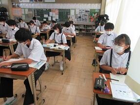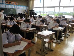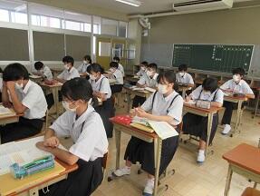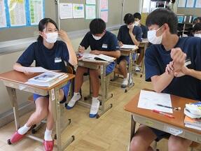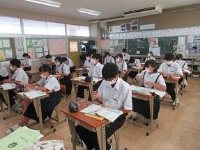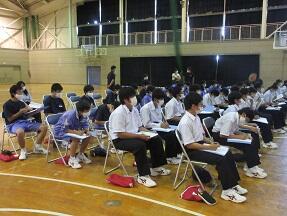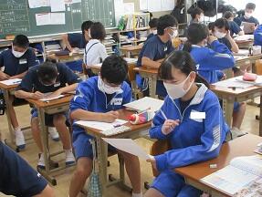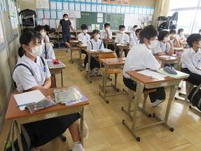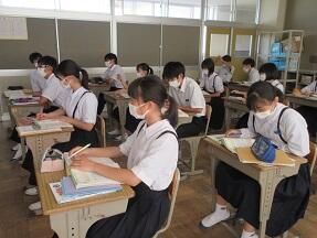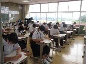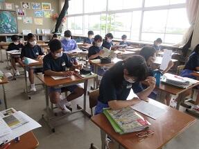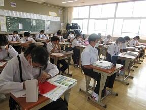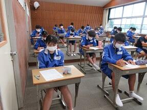 今日の6校時に、3年生が高等学校1日体験学習事前指導を行いました。まだ部活動が続いている3年生もいますが、高校入試に向けて夏休みは大切な時期になります。自分の希望する高等学校を見てくることで、受験に対する心構えができ、学習に対する意欲が高まりることを期待しています。