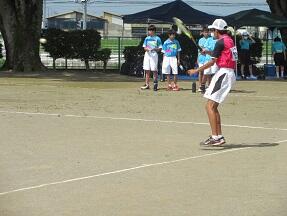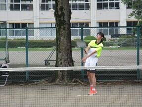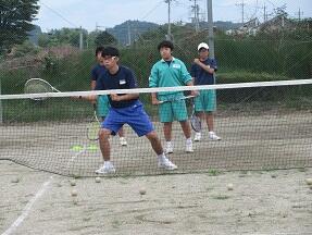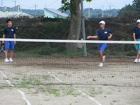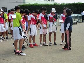 地区総体男子ソフトテニス矢板中との準決勝、1対1で3試合目。2試合目を戦った3年生男子が、3試合目を戦っている選手に、必死に戦術的なアドバイスを送っていました。とってもいい光景でした。
