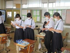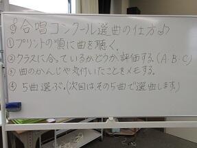 合唱コンクールの選曲のために、いろいろな曲を鑑賞していました。みんな真剣に聞き入っていました。今年は、感染症対策をとって、町民ホールで開催できればと考えています。
