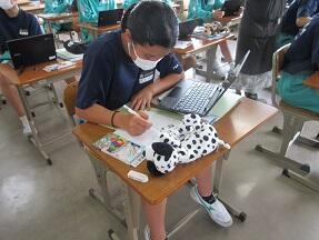 夏休みの自由研究のやり方の説明を受けて、その後テーマ決めをしていました。どんな研究になるのかとても楽しみです。