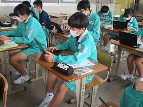 九州地方について調べたことを発表するために、タブレットを使いまとめていました。他のクラスですが明日の授業参観で発表するそうです。楽しみです。