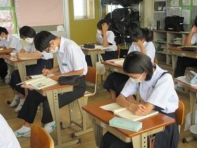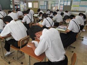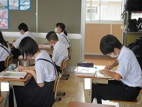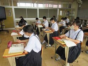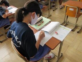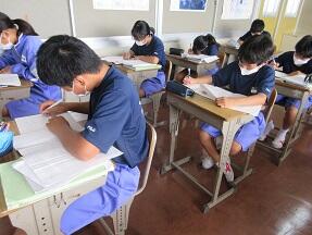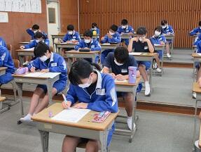 今日は、1時間目から全学年実力テストを実施しています。1年生にとっては初めての実力テストです。どのクラスも、緊張感が漂っていました。