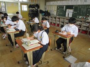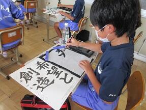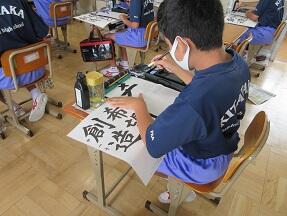 習字の学習で「課題の追求」という文字を書いていました。物音一つせず、みんな集中して取り組んでいました。