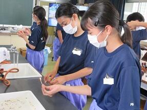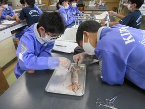 先日1組の授業でお知らせしたいかの解剖を、2組が実施していました。1組同様、みんな興味深く取り組んでいました。