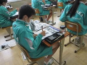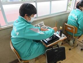 習字で「希望」という文字を練習していました。みんな緊張した表情で取り組んでいました。
