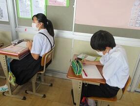 夏休み初日、今日活動している部活動を見てきました。どの部も2年生が中心となり頑張っていました。三者面談も始まります。昇降口での検温、「学校行事参加者健康チェック表」の記入をお願い致します。