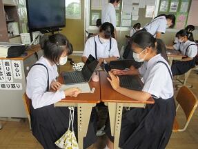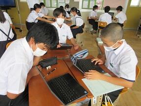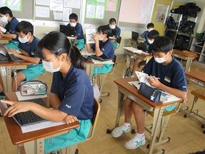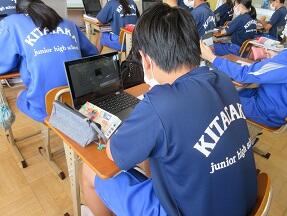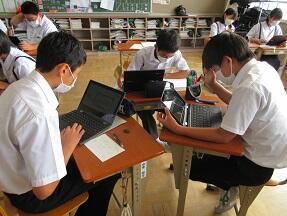 特別授業で、東京オリンピック・パラリンピックのホストタウンになっているレソト王国のことを調べていました。これは、今日の給食でレソト王国の料理が出るからです。生徒たちはインターネットを使って、自分の興味のあることをいろいろと調べていました。