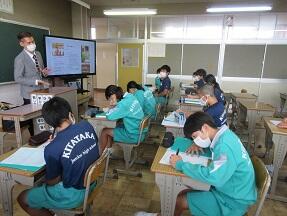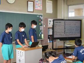九州地方で調べたことを、電子黒板を使って発表していました。2つのグループしか聞けませんでしたが、よくまとまっていると感じました。