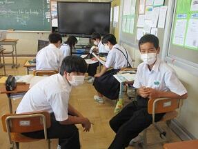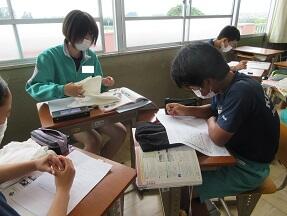 少人数で実施していて、新しく出てくる単語の発音練習や関係代名詞whichについて学習していました。やっぱり英語は難しいと強く感じました。生徒たちはよく頑張っています。
