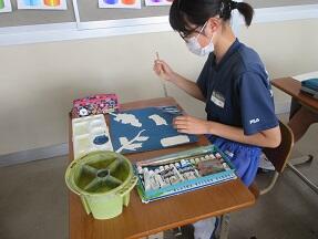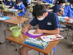 ポスターを描くために、色彩の基本を学んでいました。専門的なことがだんだん出てきて、さすが中学校の美術という感じです。
