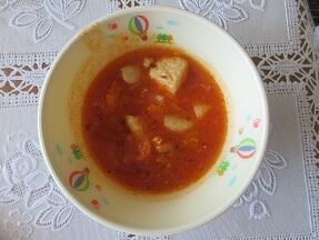 今日の給食は、食パン、ブルーベリージャム、牛乳、オムレツ、フレンチサラダ、ブレディー(トマトシチュー)、カスタードプリンです。高根沢町で生産された物は、にんじん、トマト、きゅうり、玉ねぎ、じゃがいもです。今日もたいへんおいしく頂きました。「プレディー」とは「レソト王国」の料理で、日本のトマトシチューのような料理です。本来はラム肉でつくられますが、給食では鶏肉で代用しています。