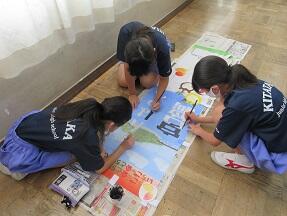 国体の応援のぼり旗が着々と完成しています。みんな丁寧に彩色してるので、できあがりが楽しみです。