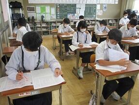 午前中の4時間で、無事期末テスト1日目が終了しました。どのクラスもほっとして給食の時間になりました。(前向きで黙食です。ちょっとさみしい感じがしますが、仕方がありません。明日の期末テスト2日目に向けて、あとひと頑張りです。
