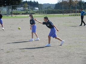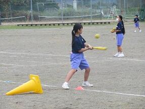 ソフトボールの導入の授業が展開されていました。こちらもなかなかバットに当たらないようでしたが、楽しく取り組んでいました。